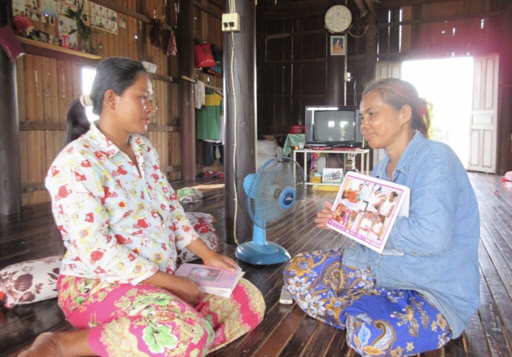 母子保健ボランティアによる家庭訪問の様子(カンボジア)