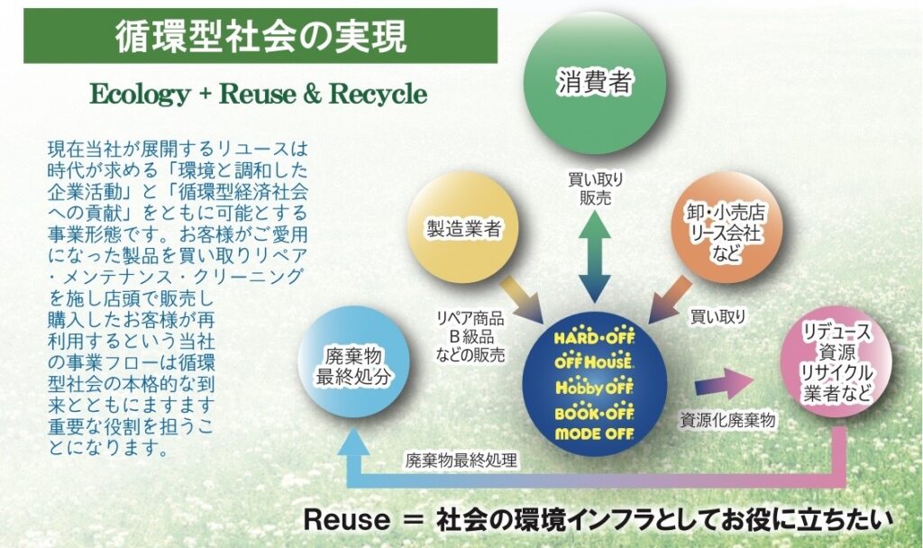 廃棄物ゼロを目指した循環型社会の実現に向け、新たな資源や余分なエネルギーを消費しないビジネスを展開。身近にできるエコロジーとして「リユース」事業に取り組んでいる。