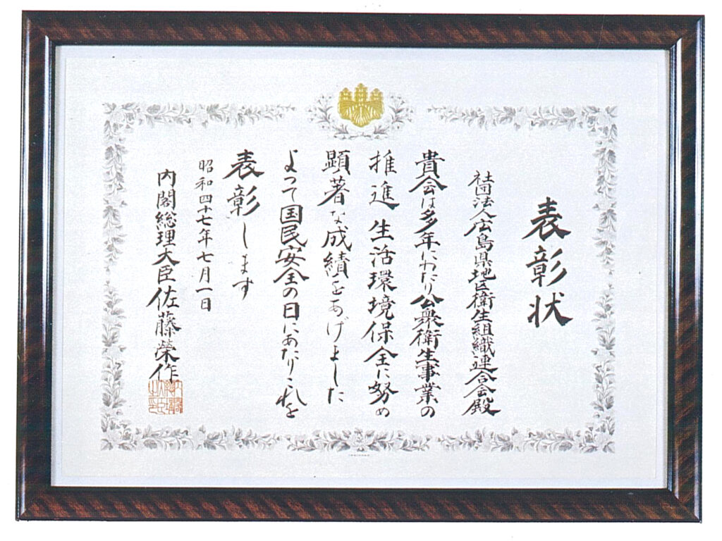 公衆衛生事業の推進、生活環境保全の取り組みが認められ、1965年には「保険文化賞」を受賞。1972年には内閣総理大臣表彰を受けました。