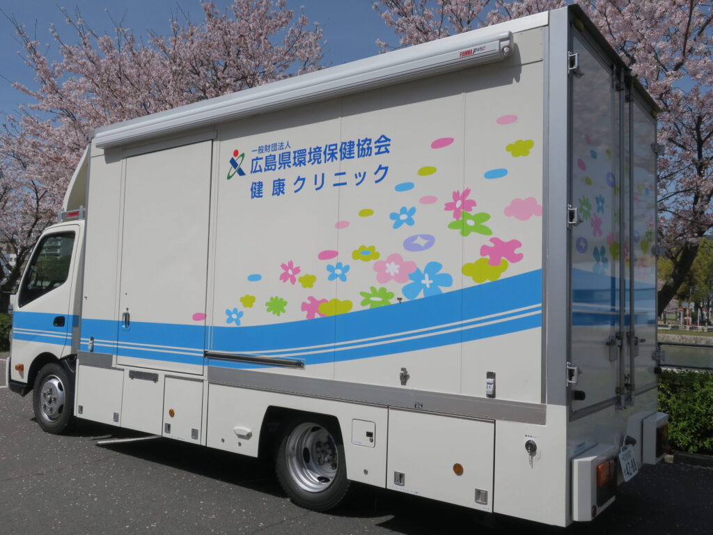 PCR検査機器を載せた検査車両を導入。車両の吸排気にへパフィルターを完備し感染対策も万全。