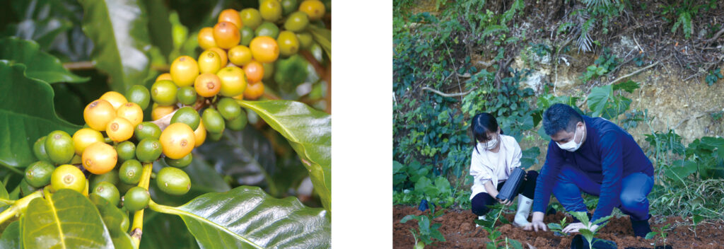 (右)コーヒー豆の育成には不利な環境を打開しながら、生産を盛り上げていきます。