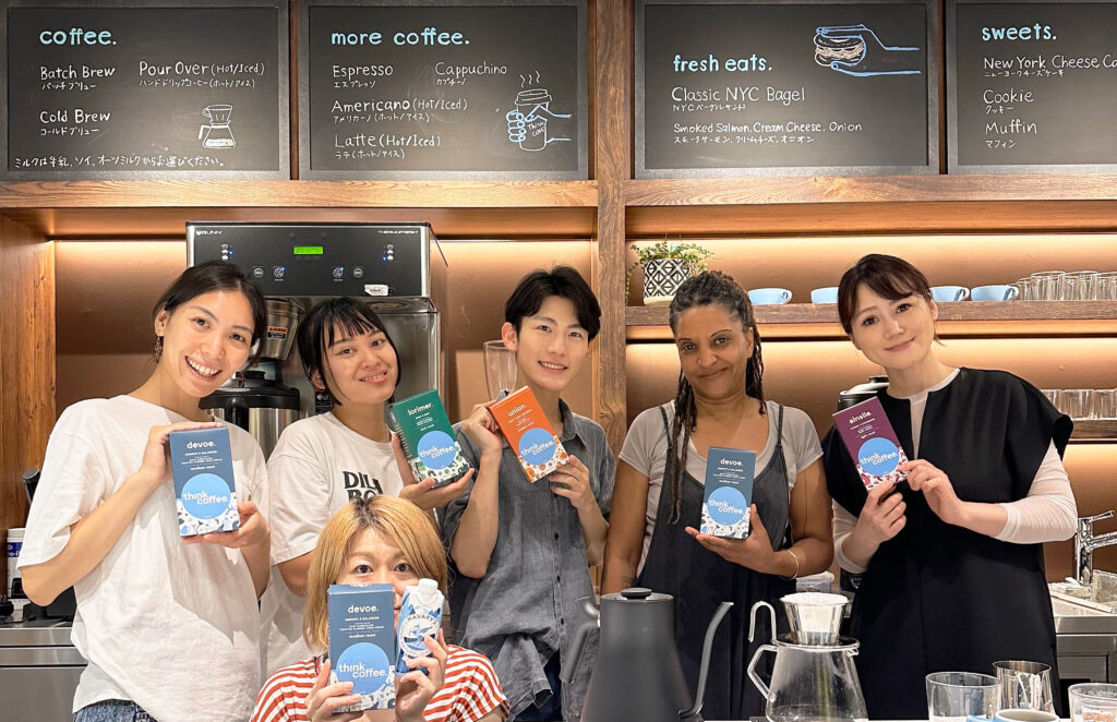 SDGs全ての概念を活かすビジネスとして今回、ニューヨーク発祥のサステナブルカフェ“think coffee”の誘致にも成功。2021年、SDGパートナーズの子会社としてThink Coffee Japan株式会社を設立し、2023年6月に東京の神田錦町に日本第一号店を開店した。think coffeeは、創業の地アメリカに11店舗を構えるほか、韓国にも1店舗を展開している。