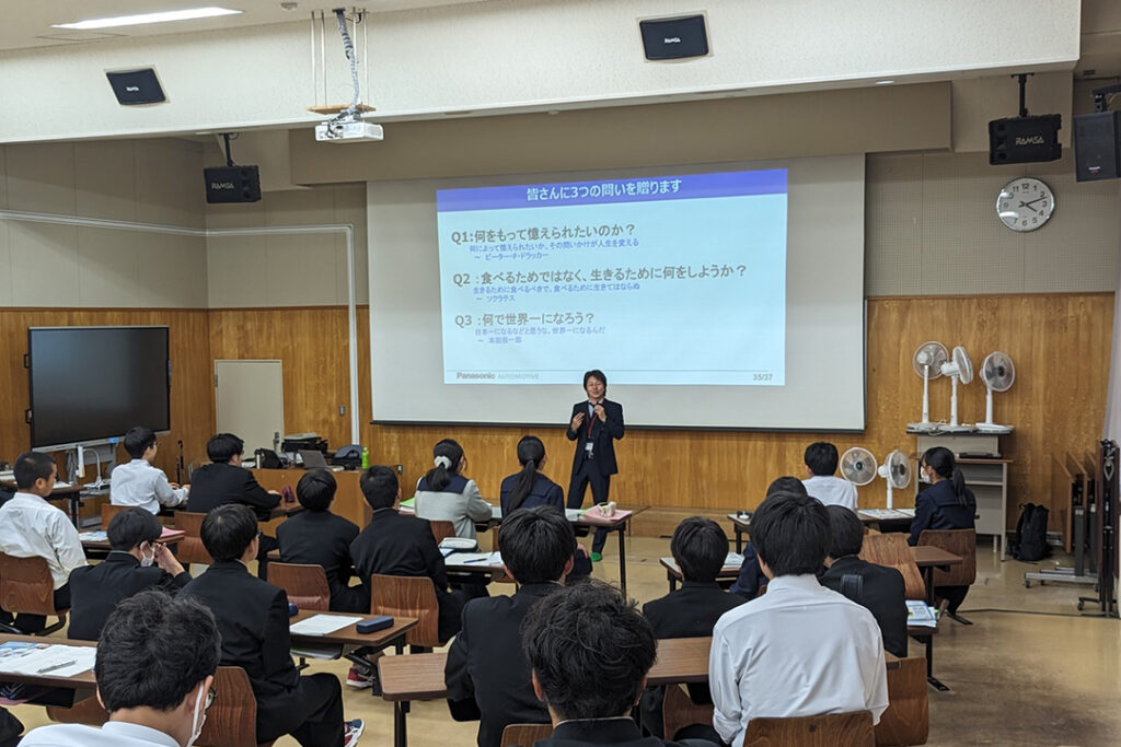 パナソニック創業者である松下幸之助氏は、人財育成の位置付けを「物をつくる前に人をつくる」という言葉で示しました。田辺代表取締役社長 自ら人財育成の一環として大学生、高校生へ講義を行っています。