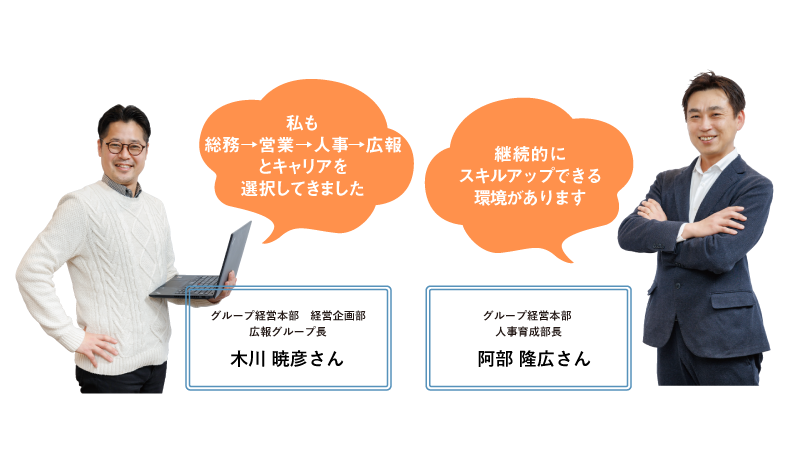 社内で募集しているポストに応募できる社内公募制度や、社員が新たに挑戦したい業務に手を挙げることができる社内FA制度もあり、中長期的な視野で、柔軟にキャリアを築いていくことが可能です。