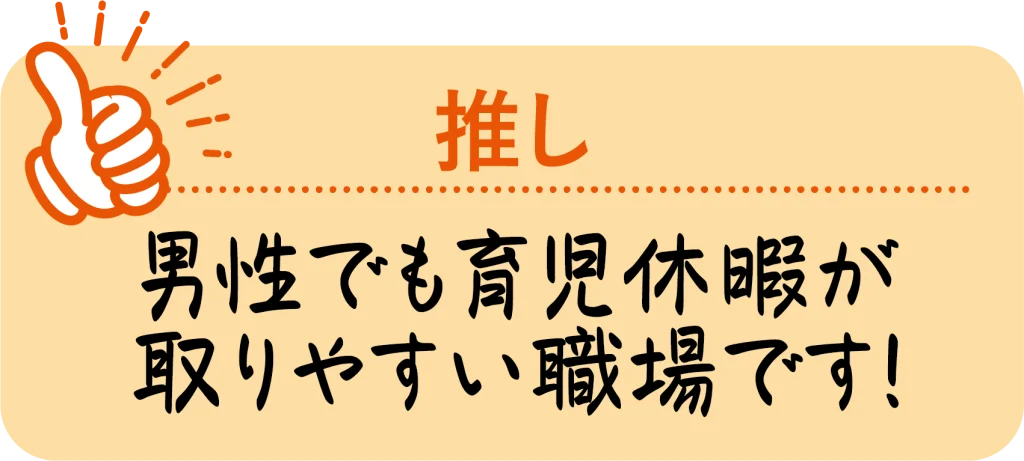 育休取得経験のある先輩に話を聞いており、男性が休みを取ることの大切さを教えてもらっていました。また、実際に私が育休を取得することに対して上司や同僚に相談をしたときに後押しをもらいました。復帰した現在、今度は私が先輩や後輩へ仕事で恩返しをしていきたいです。