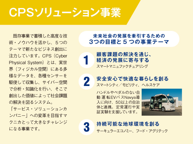 半導体(Physical)、サイバーセキュリティ(Cyber)という、既存2事業で蓄積された最先端の技術やソリューションを世界中から見つける「目利き力」を活かして、第3の柱となるCPS(仮想空間と現実世界をデジタルでつなぐサイバー&フィジカルシステム)事業による課題解決から価値を創出しています。