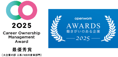 人的資本を最大化し、個人と組織の持続的な成長を実現する企業として、「キャリアオーナーシップ経営 AWARD」の最優秀賞(大企業の部)を2年連続で受賞。また、「Open Work」が発表する働きがいのある企業ランキング2025では5位にランクイン。