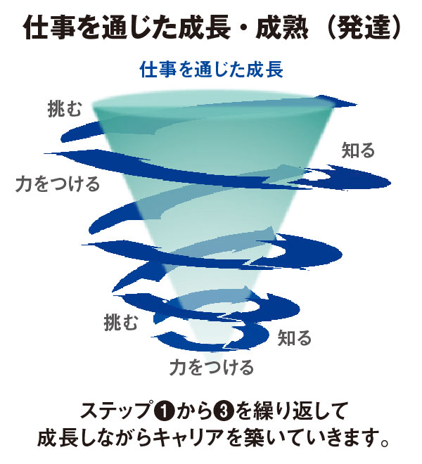 仕事に主体的に取り組むことが第一歩。自分が向き合う仕事において、何が期待・成果であり、そのためにどういった知識・スキルが必要かを捉えます。