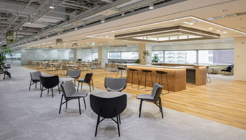 チームの力を最大化するために必要不可欠となる、コミュニケーションに焦点を置いた新しいオフィス空間。完全フリーアドレスで、闊達なコミュニケーションに最適な空間へ進化させると共に、オフィスのサイズも最適化します。