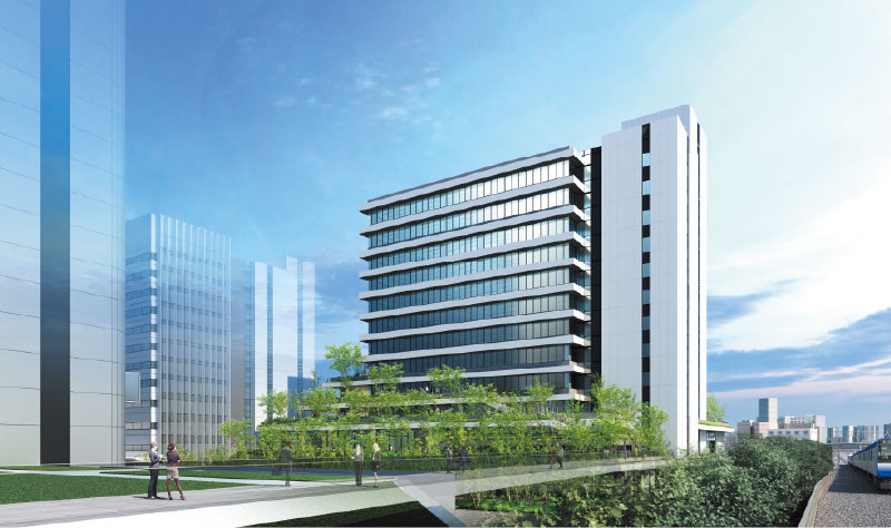 現在、玉川事業場内に新たな拠点を建設中。約4,700人が利用する予定で、世界中のパートナーと交わり、オープンイノベーションで社会価値を創造する「知の創造の場」を目指します。規模は地上12階、高さ74.40m、延べ床面積5万㎡。2026年3月に開業予定。